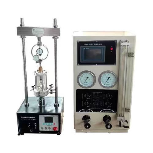 用于一般土工实验室及大专院校的教学试验。仪器为应变控制式,用于测量大周围压力在1.0MPa,直径为φ39.1mm的土试样在轴向静负荷条件下强度和变形特性的三轴剪切试验,可以进行不固结不排水剪(UU)、固结不排水剪(CU)和固结排水剪(CD)的三轴试验。三轴压缩试验是指横向有限压缩和剪切试验。所使用的仪器是三轴仪(亦称三轴压缩仪)。三轴仪的核心部分是一个三轴压力室,配有轴向压缩系统、侧压系统和孔隙水压力测量和读数系统。试验用土样为圆柱形,高径比为2≤2。5。样品涂上一层薄的橡胶膜,使土壤样品的孔隙水与膜外的液体(水)完全分离。在给定的三轴压力室附近的压力下,轴向附加压力不断增大,直到根据莫尔强度理论计算出剪切面的法向应力和极限剪应力。三轴剪切试验结果可以确定土体抗剪强度指数的内摩擦角和粘结力。与直接剪切试验相比,三轴试件的应力分布更为均匀,可用于研究复杂应力条件下土体的抗剪强度特性。由于能够准确地测量土壤样品孔隙水压力的变化,可以定量地得到土壤中有效应力的变化。然而,土样的制备繁琐且易受干扰。此外,常用的三轴剪切仪的实际主应力等于小主应力,因此将其应用于平面变形或三轴应力状态的研究是不一致的。
